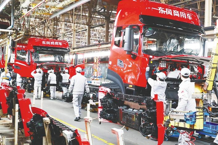 近日,在十堰的东风商用车整车工厂绿色车间里,产线工人开足马力忙生产,一台台崭新的车辆有序下线。2025年,东风商用车销量达13.1万辆,同比增长24%;新能源车销量突破1万辆,同比增长98%。(视界网 张启国 摄)