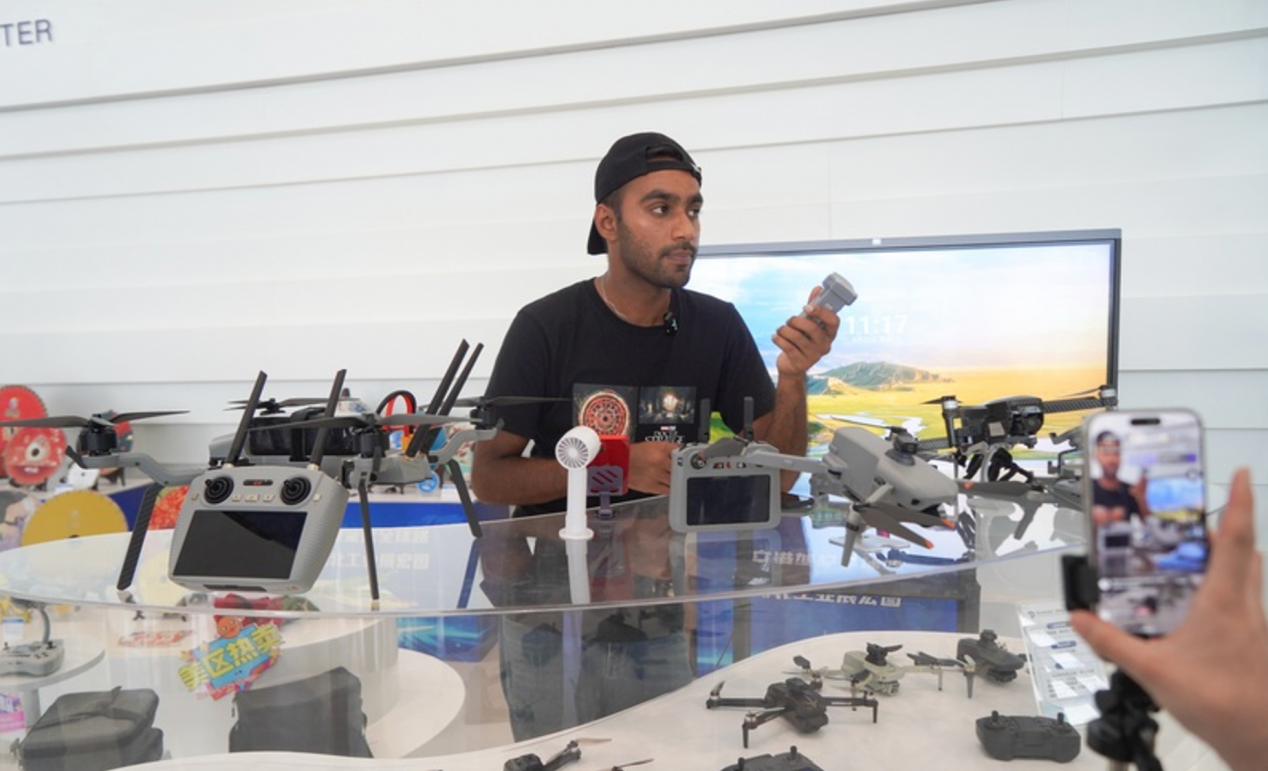 主播阿布在直播间向消费者推荐无人机(央广网记者 邓子依 摄)