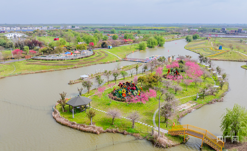 央广网仙桃4月4日消息(记者赵玲)春回江汉平原,油菜花、樱花、郁金香次第绽放,踏青赏花正当时。在湖北仙桃长埫口镇刘家垸林场,占地面积约2000亩的百万花海生态园内,各色花卉竞相开放,层层叠叠的花田随风起伏,吸引着八方游客慕名而来。