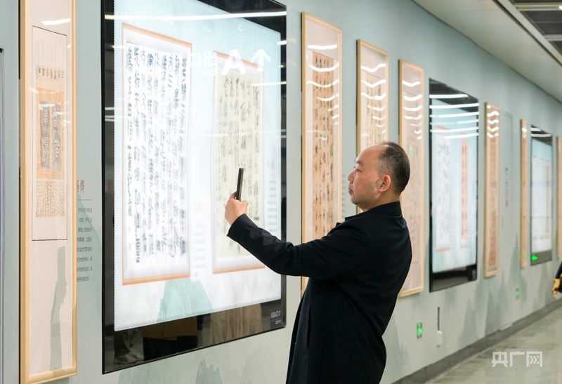 市民驻足欣赏书法作品(央广网记者邓子依 摄)