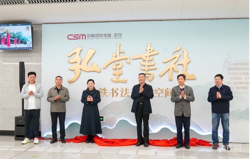 央广网武汉4月21日消息(记者邓子依)4月21日上午,伴随着悠扬的古琴声与灵动的汉服秀,全国首个地铁书法艺术展示空间——弘堂书社武汉地铁书法艺术空间在武汉地铁8号线水果湖站正式揭幕。