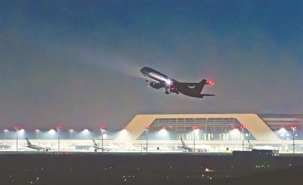 凌晨,装载完毕的货机依次从花湖国际机场起飞,满载货物飞赴全球。(湖北日报全媒记者薛婷 柯皓摄)