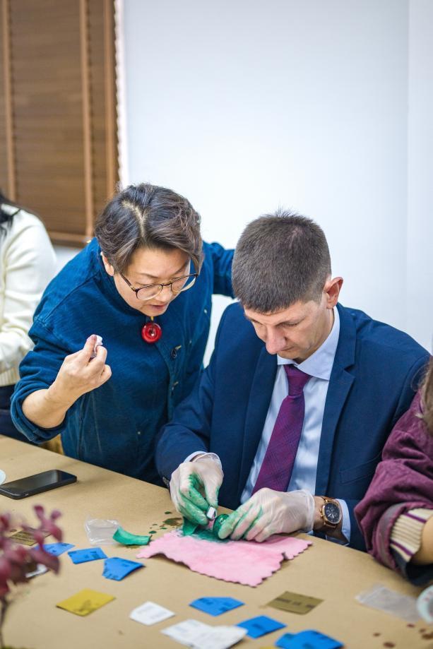 下午,专家团走进东湖畔的国漆艺术研究中心。这里陈列着源自湖北的大漆珍品——中国漆艺八千多年历史中,汉代漆器超三分之二出自荆楚。在大漆手艺人指导下,外国专家亲手在葫芦上打磨大漆纹样,完成的作品可带走留念,成为此次文化之旅的独特纪念。