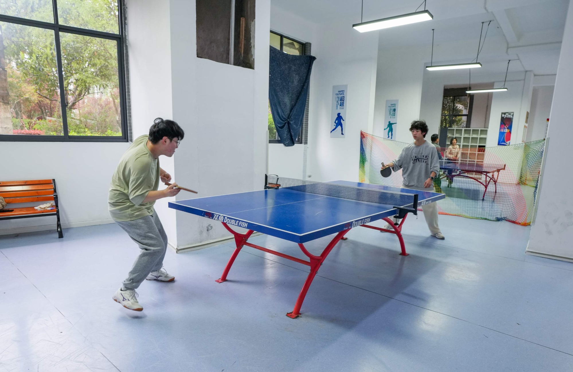 11号楼架空层被改造成专业乒乓球场,几乎每天满台。
