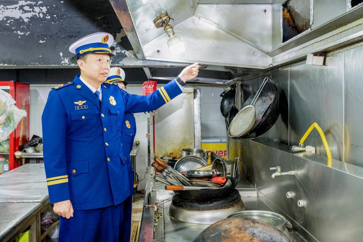 随后,调研组前往武昌区千家街街道千家街社区金涛铭座小区,重点对小区底商的餐饮场所进行了突击检查。调研组深入多家餐饮后厨,仔细查看燃气管道敷设、油烟管道清洗记录、灭火器材配备及员工消防安全“四个能力”掌握情况,叮嘱商户加强用火用电用气高峰期巡查,严防“小火亡人”。