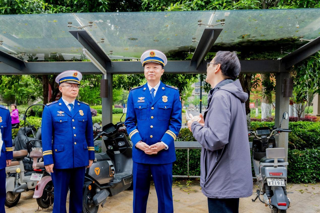 当日上午,湖北省消防救援总队总队长董新明带队来到东西湖区常青花园社区,深入城市运行管理中心了解微型消防站运行、网格化消防巡查、电动自行车集中充电管理及消防宣传教育工作。随后,实地检查楼栋下充电区车辆停放、充电棚耐火等级、烟感报警器覆盖范围和悬挂式干粉灭火装置维护情况。