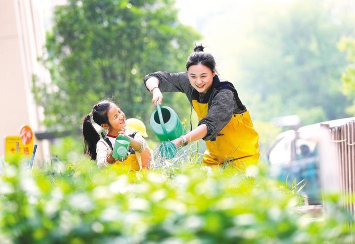 4月24日,在荆门市东宝区长宁实验幼儿园种植园里,孩子们在老师带领下体验翻土、播种等田间劳作的乐趣。“五一”国际劳动节前夕,东宝区各中小学、幼儿园依托“劳动实践课堂”,引导孩子们在动手实践中掌握劳动技能,感知劳动价值,传承“劳动最光荣”的精神。(视界网 赵平 李玲飞 摄)