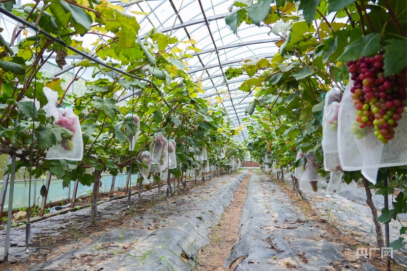 “快来尝尝我们种的阳光玫瑰!”大坪村党支部书记王先玉热情地招呼着,手中的剪刀利落地剪下一串晶莹剔透的葡萄。在大棚里,葡萄都套着特制的纸袋。“这是物理防虫法,我们全程不打农药。”