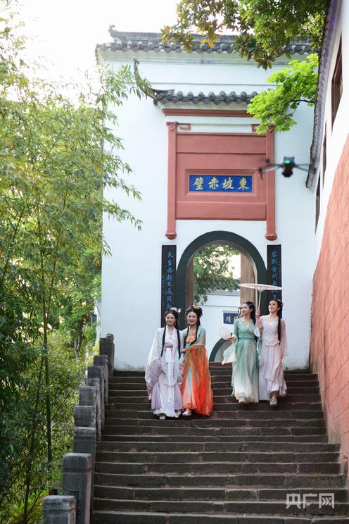 东坡赤壁景区内游客拍照打卡(央广网发 黄冈市文旅局供图)