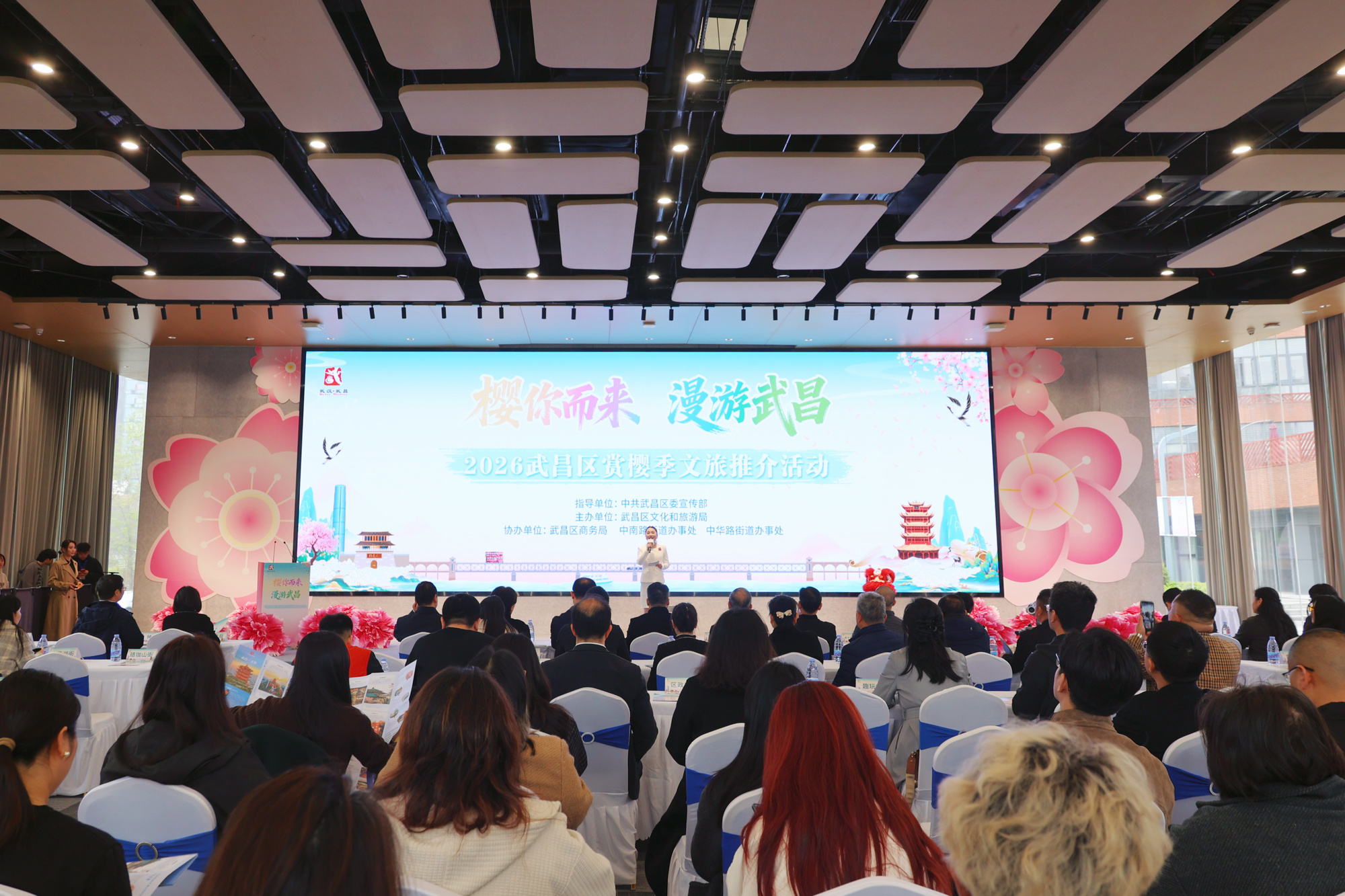 本次活动以樱花为媒,以文旅为桥,集中展示推介武昌区文旅体商融合发展的新业态、新场景、新项目、新产品,进一步激活文旅消费活力,搭建政企对接、媒体联动、全民参与的交流合作平台,推动武昌文旅产业高质量发展。省市区相关部门、重点文旅企业、行业协会、主流媒体、自媒体、网络达人及青年代表等约200人齐聚一堂,共赴这场樱花之约,共促武昌文旅发展。