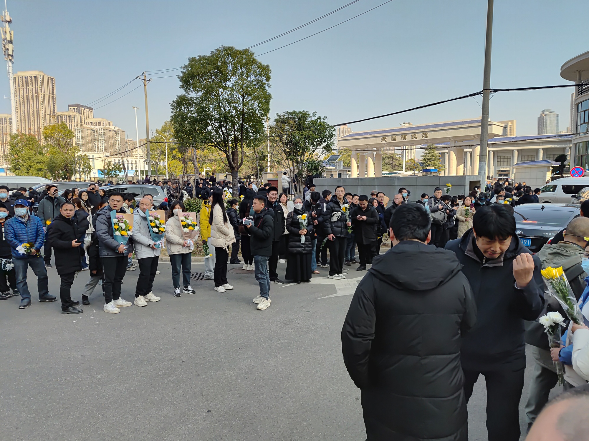 湖北省武汉市武昌殡仪馆门口,市民自发前往送别(央广网记者张卓 摄)