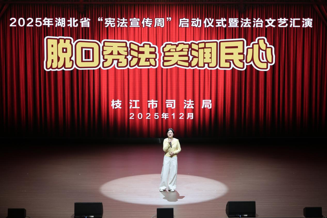 启动仪式现场举办了精彩的法治文艺汇演,来自武昌区相关政法单位、枝江市司法局董市司法所、武昌南湖街道华锦社区、湖北泓峰律师事务所的法律工作者们,通过诗朗诵、脱口秀、情景剧、主题演讲等群众喜闻乐见的形式,以实际行动凝聚法治共识、传递法治力量。参加演出的武昌区南湖街道华锦社区“老红帽”志愿队队员叶小琼说,作为“法律明白人”,把生活中的法律知识搬上舞台,希望吸引更多人参与其中,让宪法精神浸润社会生活的每一个角落。