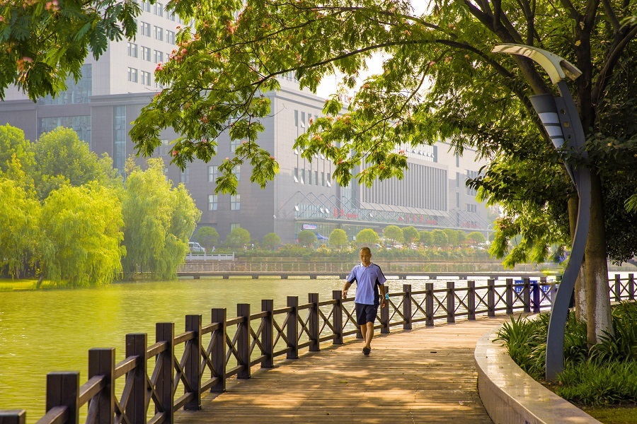 天门市东湖公园之晨(央广网发 天门市委宣传部供图)