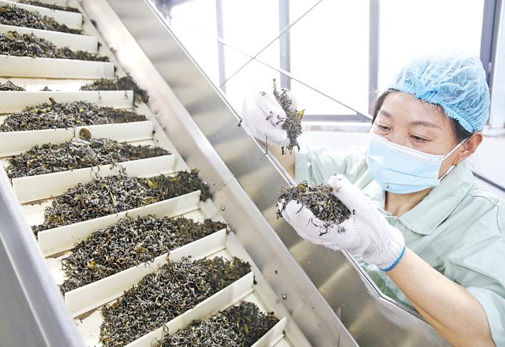 8月28日,湖北红绿黄茶业有限公司(大悟)员工在车间制作黄茶。该公司从安徽农业大学引进黄茶制作工艺,通过“高校+企业+合作社”模式,新建自动化生产线,年加工鲜叶500吨,让夏秋茶叶从“粗枝大叶”变“金枝玉叶”。今年,大悟黄茶“坐”上中欧班列,出口欧洲。