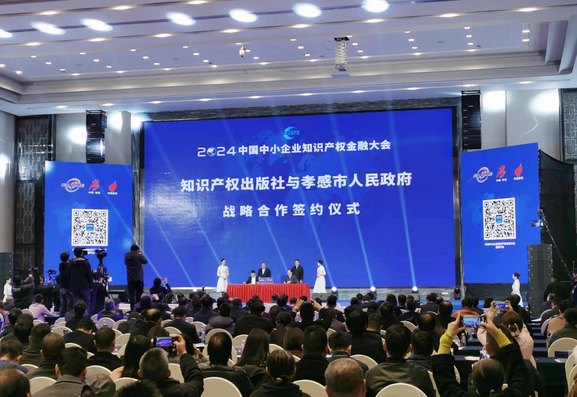 11月19日-20日,由中国中小企业协会主办,中共孝感市委、孝感市人民政府承办的2024中国中小企业知识产权金融大会在湖北孝感举行。大会以“知识创造价值金融赋能发展”为主题,聚焦知识产权质押融资,助力科技型中小微企业解决融资难题,进一步激发企业的创新活力。”在20日举办的大会开幕现场,知识产权出版社与孝感市人民政府达成战略合作协议,中国中小企业知识产权金融服务平台——孝感平台揭牌。