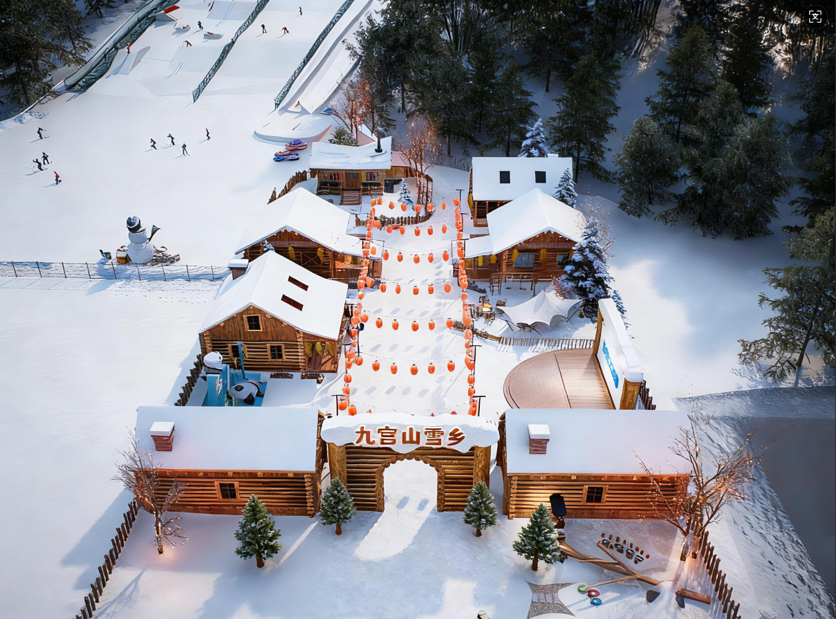 今年,景区创新打造东北雪乡主题体验区,将北国雪乡的民俗风情与江南文化底蕴深度融合,并以非遗文化为核心灵魂,让冰雪景观成为文化传承的生动载体。雪乡区内,红灯笼沿街高悬,积雪覆盖的屋顶形成独特的“雪蘑菇”景观,构建南北交融的特色场景。