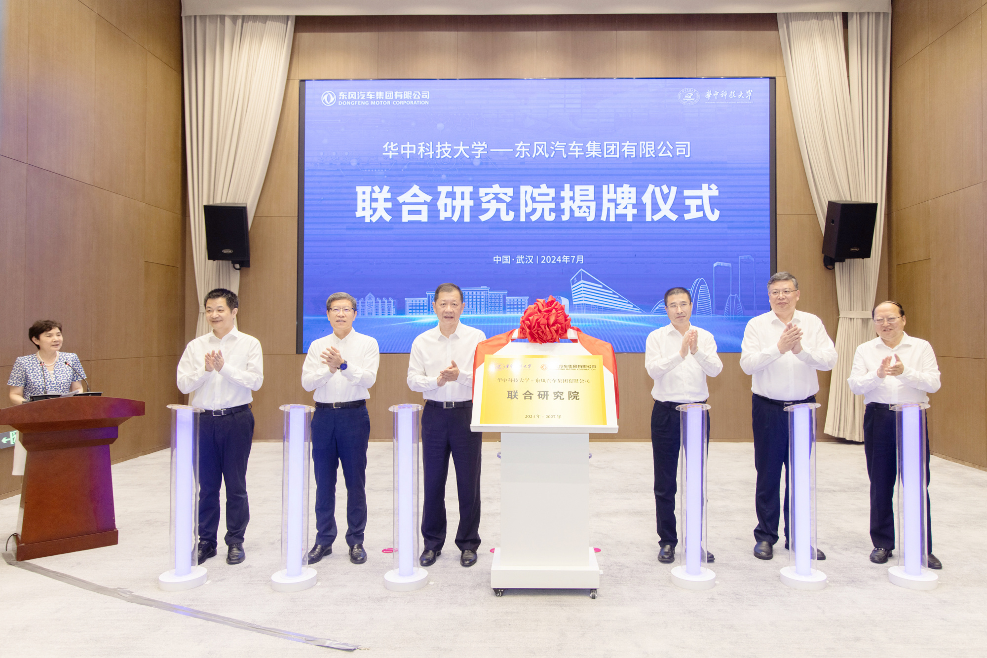 东风公司董事长、党委书记杨青,东风公司总经理、党委副书记周治平,华中科技大学党委书记、中国工程院院士张广军,华中科技大学校长、中国工程院院士尤政,武汉市委常委、经开区工委书记刘子清等见证签约,并为华科大—东风公司联合究院揭牌。