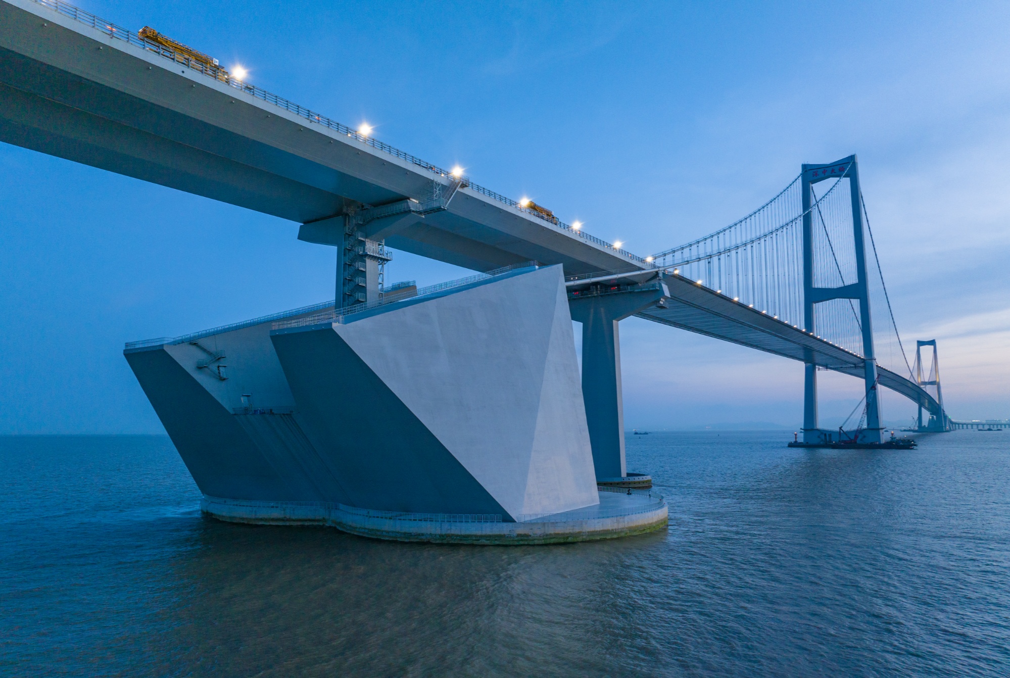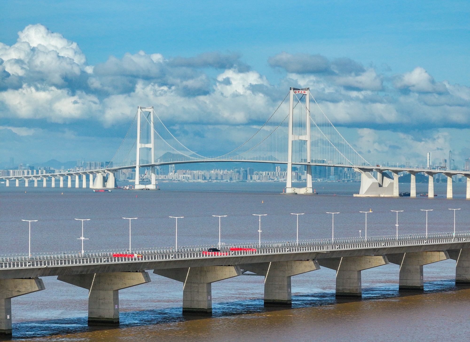 在宽阔碧绿的伶仃洋上,全长24公里的超级工程深中通道宛若游龙,时而以桥梁形式飞跃海上,时而以海底隧道形式遁入海底。项目建设进入收尾阶段,其中主跨1666米的深中通道控制性工程伶仃洋大桥以其270米高塔成为全线耀眼的存在。