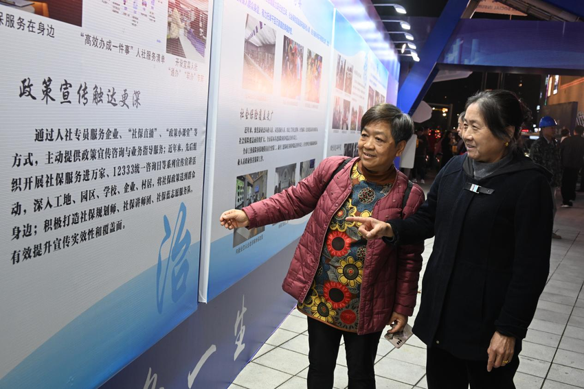 “社保伴你同行”鲜花打卡墙前,老人们纷纷合影留念。在“社保‘十四五’成果展”前,一位老人指着“从‘异地跑’到‘指尖办’”的展板感慨万千。现场数据显示,全市养老保险参保率达96%,养老金发放规模五年上涨40%,企业退休待遇实现“21连涨”。