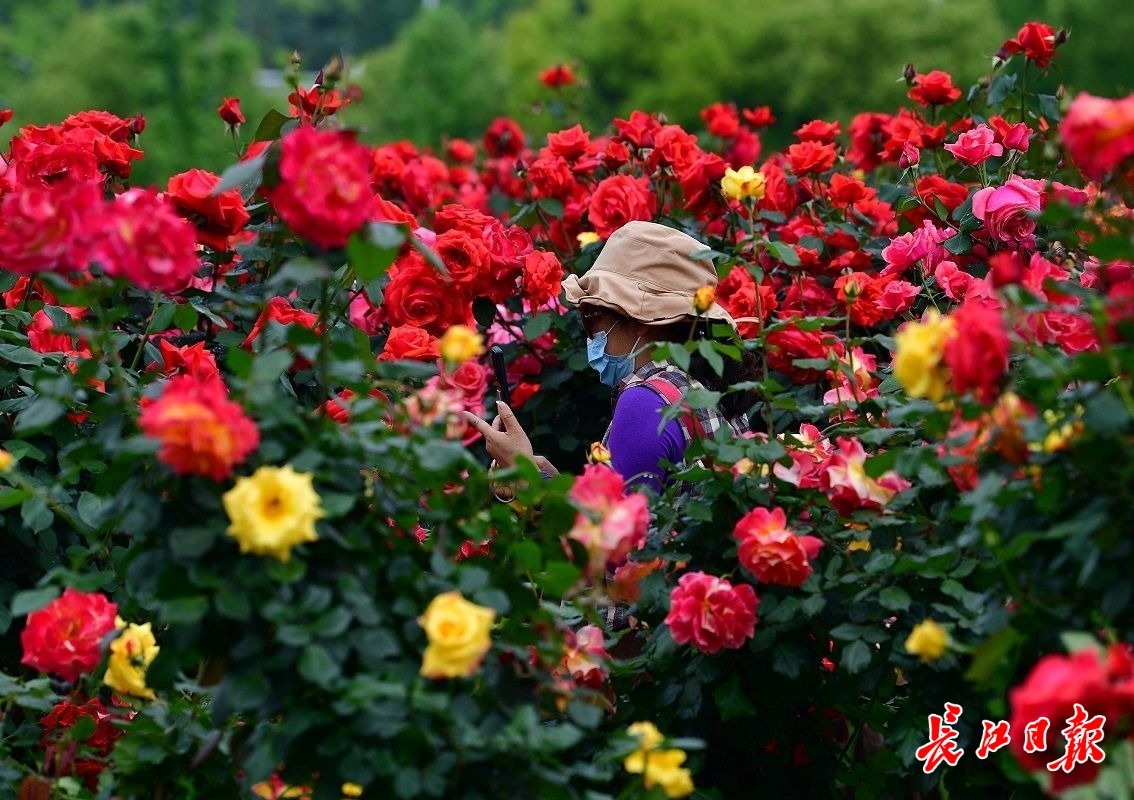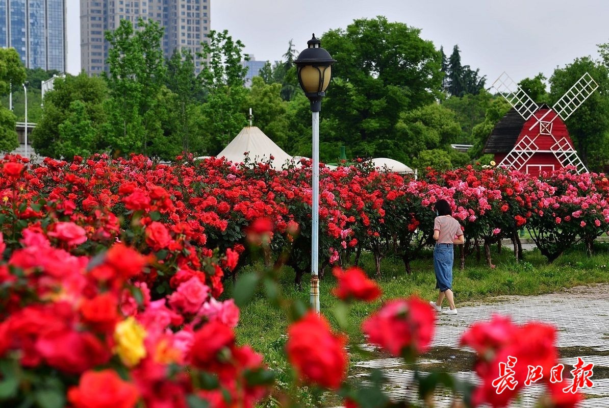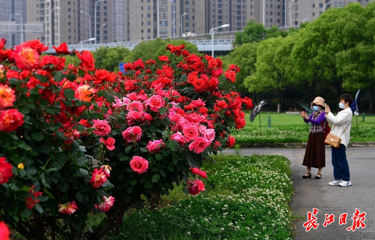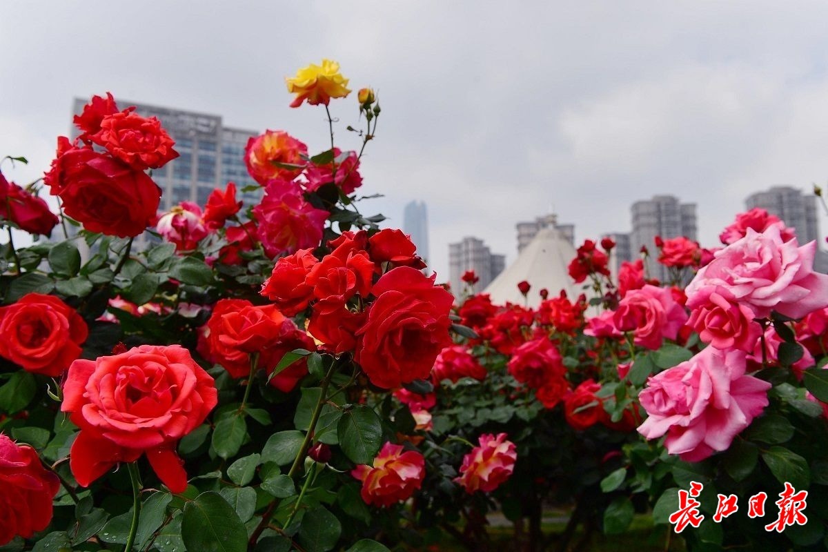 长江日报大武汉客户端4月23日讯 4月23日,记者看到,武汉市江汉区泛海广场旁,数百株2米多高的“大树”月季进入了盛花期,碗口大的花朵开满枝头,花色红艳,花香浮动,吸引不少市民流连花间,驻足观赏。大片的月季花林,与周围的草地、绿树和鳞次栉比的摩天大楼相映成景,美不胜收。据了解,树状月季大多是将花量大、花色美的月季嫁接在蔷薇树干上培育而来,让原本爬藤或者低矮的月季变成高大的月季树,营造出高贵典雅、形状独特的观赏效果。(长江日报记者李永刚 摄影报道)