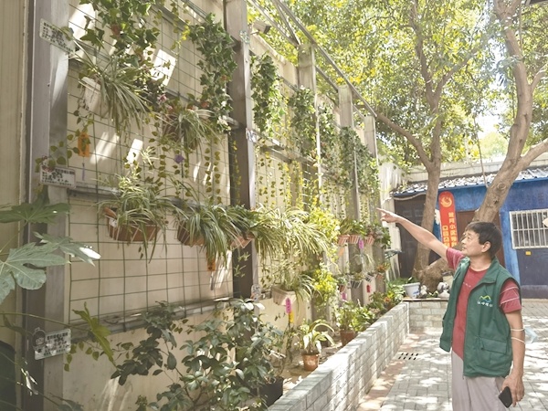 居民刘志勇展示登月小区居民共建的绿色驿站。