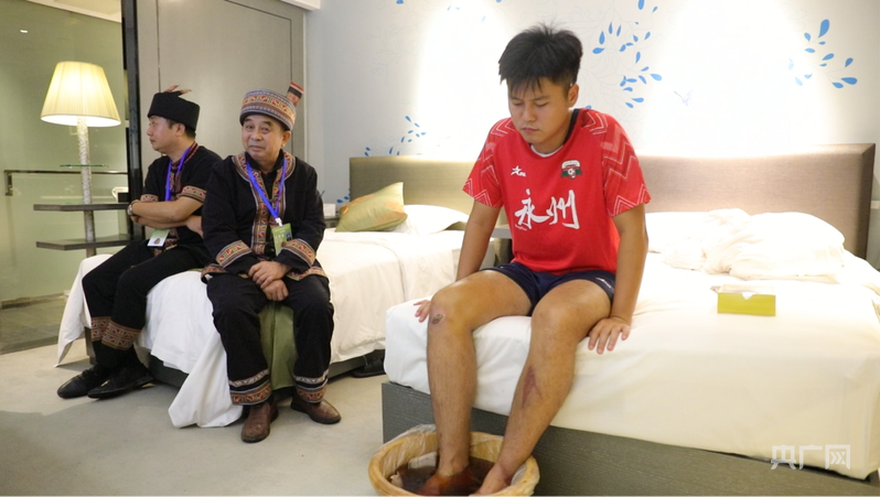在永州队球员入住房间内,草药的清香弥漫其间,取代了往日镇痛药膏的气味。队员们围坐在特制的瑶浴足浴桶旁,将双脚浸入温热的药液中,神情放松。曾受筋膜炎困扰的18号队员张华越感受尤为明显,他表示:“之前受到筋膜炎的困扰,今晚体验瑶浴后,肌肉和筋络得到了明显放松,既感觉奇妙,也非常舒适。相信在瑶医团队的帮助下,我们能够赛出更好成绩。希望明天能用一场酣畅淋漓的胜利回报永州人民和所有支持我们的观众。”