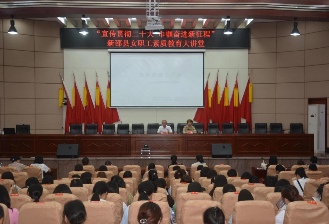 为提升女职工政治素质和技能水平,减缓职场女性工作生活压力,助推巩国卫创国文工作,9月25日,湖南省邵阳市新邵县总工会开展“宣传贯彻二十大·巾帼奋进新征程”女职工素质教育大讲堂专家讲座。