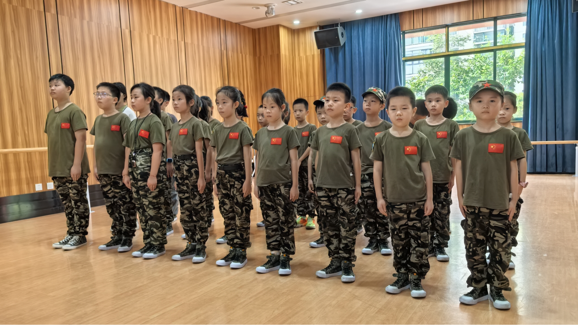从站军姿到队列行进,志愿者手把手指导和纠正孩子们的动作。尽管额头渗着汗珠,孩子们始终挺直腰杆。“虽然累,但和小伙伴一起坚持下来特别有成就感!”9岁的肖涵玲语气坚定,一招一式间,纪律意识与团队协作精神悄然萌芽。