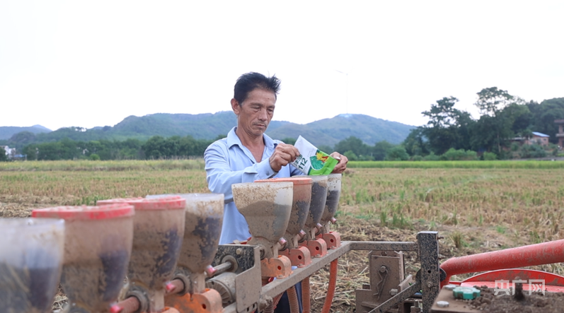 江华涔天河镇水东村油菜机播现场(央广网发 朱婷 摄)