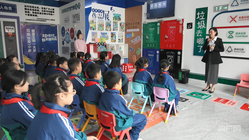 富强小学的同学们认真学习垃圾分类理论知识(央广网发 蒋彦斌 摄)