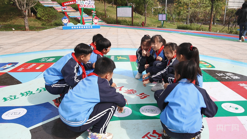 同学们在优美的公园环境中参与“沉浸式”垃圾分类实践活动(央广网发 蒋彦斌 摄)