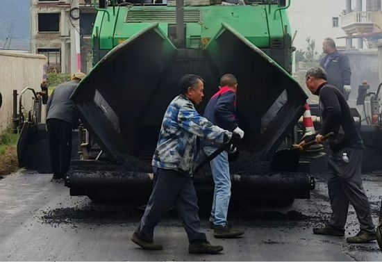 农村公路提质改造不仅是“面子”的升级,更注重“里子”的夯实。在岩塘村段施工中,团队采用全封闭作业模式,配置全自动摊铺机、压路机等专业设备,安排专人全程监控沥青摊铺温度,每一项指标都严格把控。