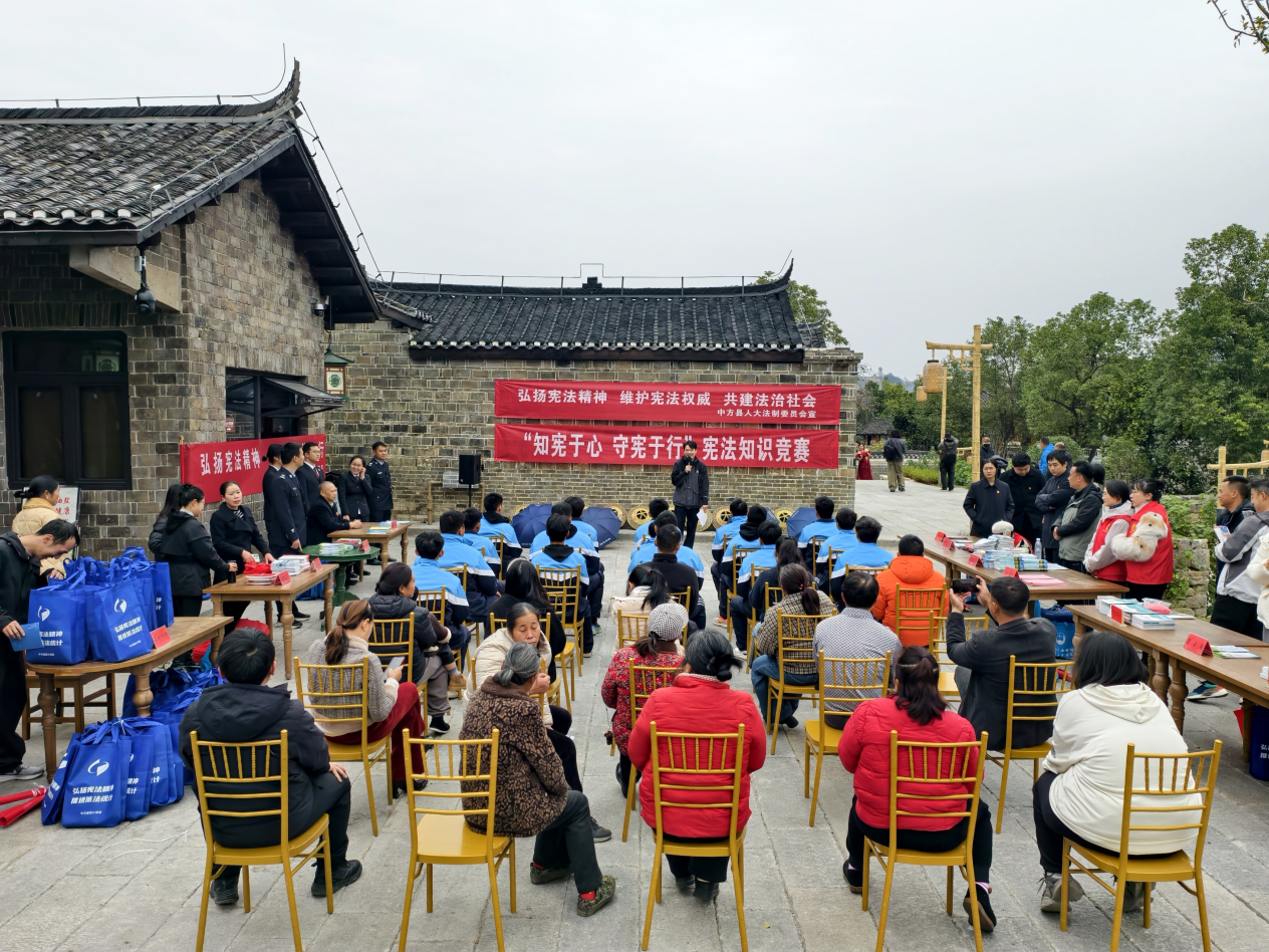 12月4日,湖南省中方县组织县司法局、县政府办、县人大、县法院、县检察院等10余家相关单位,走进荆坪古村共同举办了一场主题鲜明、形式多样的“12·4”国家宪法日集中宣传暨宪法知识竞赛活动。