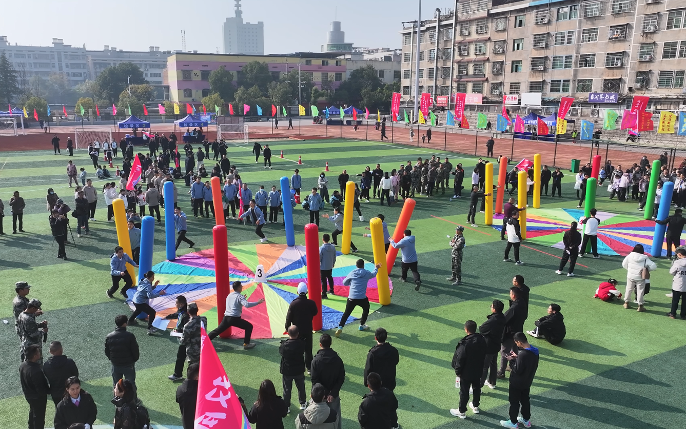 比赛伊始,热身项目千人齐跑瞬间点燃全场热情。随后,48支参赛代表队有序进行“顶天立地”“齐心协力向前冲”“拔河”3个成人竞技项目和“车轮滚滚”“足球绕桩射门接力”2个亲子竞技项目的比拼。干部职工们在团结协作中享受运动带来的快乐和激情,在与孩子并肩作战、携手闯关中传递家庭和谐的温暖力量。