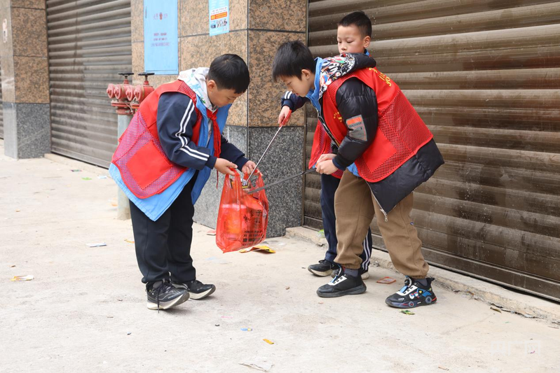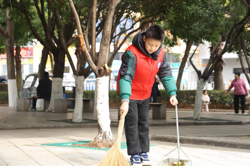 在中兴路沿线,翠竹园小学的学生们认真清理主次干道、背街小巷的垃圾杂物,细致排查卫生死角,努力改善城市环境面貌。翠竹园小学2101中队队员蒋政宇表示:“我们每周坚持参加公益活动,这让我感到很有意义。活动不仅锻炼了我的沟通能力,也能为社区带来便利,让环境更整洁。我会继续坚持下去。”