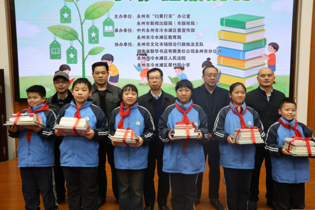 近日,湖南省永州市“护苗·绿书签行动”进校园宣传活动走进永州市冷水滩区翠竹园小学。本次活动以“汇聚你我力量,共护健康成长”为主题,倡导绿色阅读与文明上网理念,旨在提升未成年人对非法出版物及有害信息的鉴别能力与防范意识,筑牢未成年人文化权益保护防线。