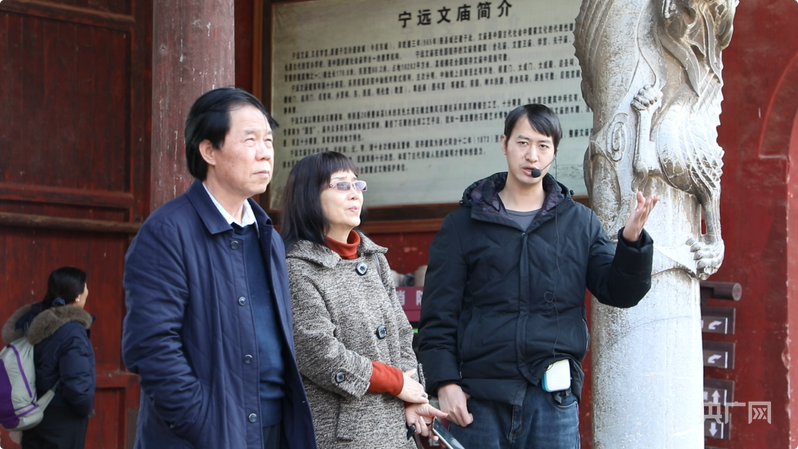 艺术家们在解说员的讲解下,仔细了解宁远文庙的历史(央广网发 蔡兴 摄)