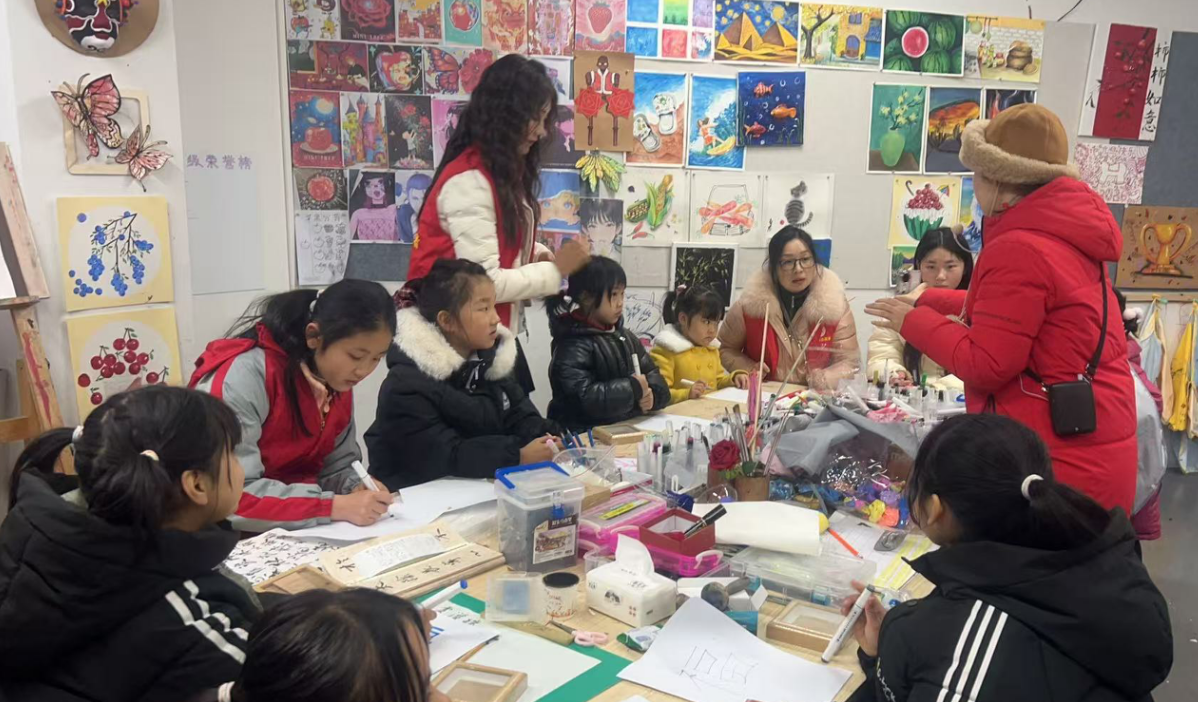 1月10日下午,活动在早晨美术馆图书馆分馆拉开序幕。孩子们在志愿者的引导下参观艺术展品,并参与木工手作与“我心中的太阳”主题创意绘画课程。他们亲手制作笔架、木偶、书签等作品,绘制充满童真想象的画作,既锻炼了动手能力,也寄托了对光明与希望的憧憬。