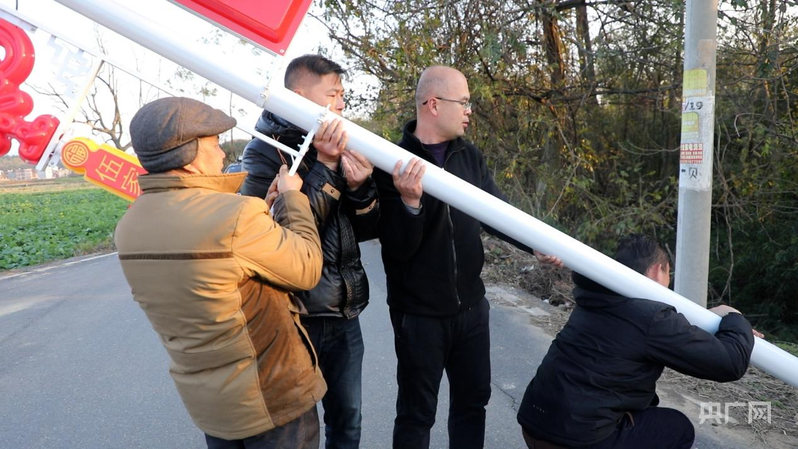 施工人员在安装路灯(央广网发 杨露 摄)