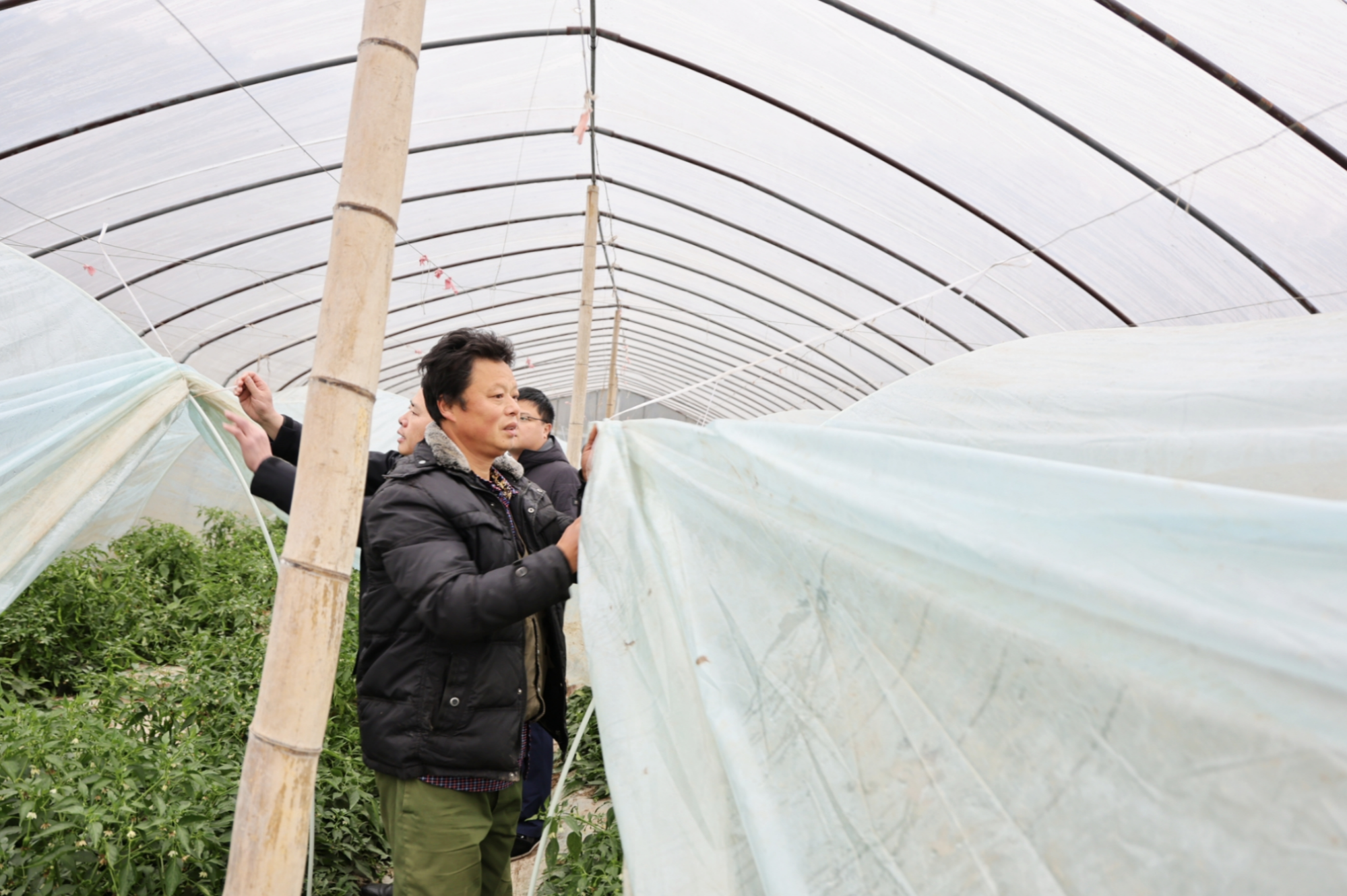 1月19日,湖南新邵迎来新一轮强降温。当天早上,新邵县农技专家便赶到严塘镇湖南红君峰农林科技开发有限公司蔬菜基地,仔细查看蔬菜长势,检查大棚保温情况,排查棚体安全隐患,现场示范指导农户加固大棚骨架、修补破损棚膜、拉紧压膜线,并手把手传授低温寒潮防范要领,结合蔬菜实际开展面对面技术指导。