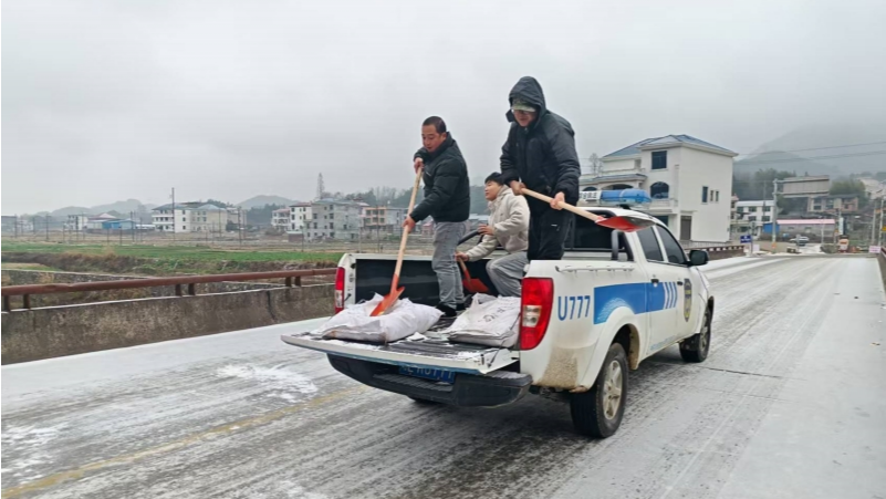 险情就是命令,武阳镇、乐安铺乡、水口乡党委和政府迅速启动低温雨雪冰冻灾害应急预案,联合县交通局、县公路建设养护中心、交警大队等单位组建“党员先锋队+专业抢险队+志愿者服务队”,以雪为令、闻雪而动,全方位开展道路除冰保畅工作,用责任与坚守守护群众平安出行路。