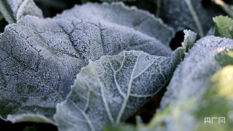 油菜薹附上了一层白霜(央广网发 王庚娣 摄)