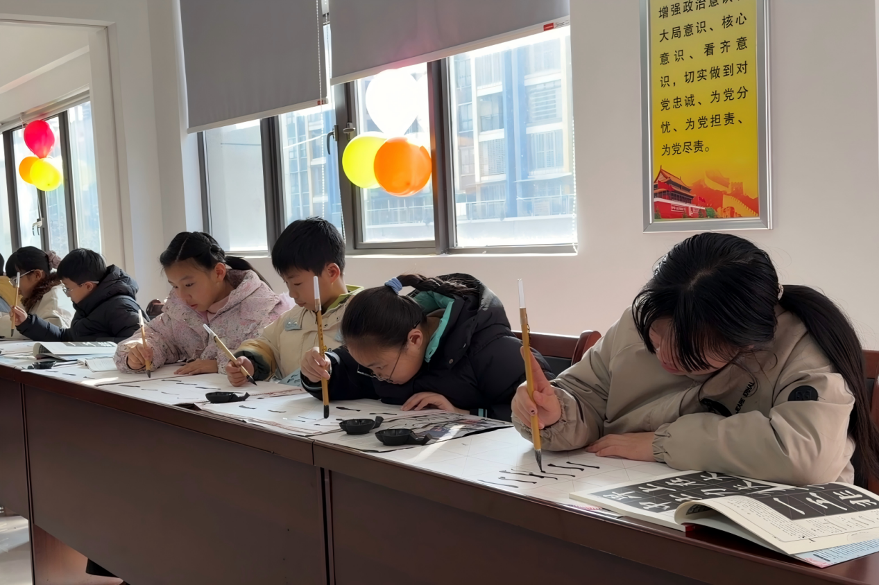 永兴县便江街道举办“民政温情暖童心 书香雅韵漾悠长”主题冬令营,带领孩子们感受汉字之美与传统文化魅力(何云开 摄)