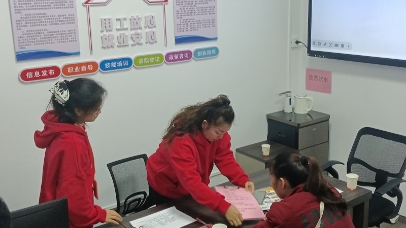 永兴县“福城银嫂”零工驿站工作人员为求职者推荐工作(雷辉菊 摄)