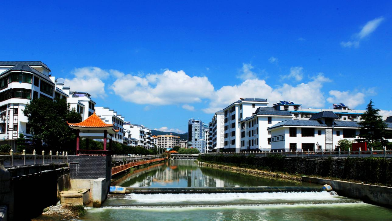蓝天白云下的“世界长寿乡”桂东县城一角(邓焱萍 摄)