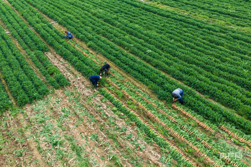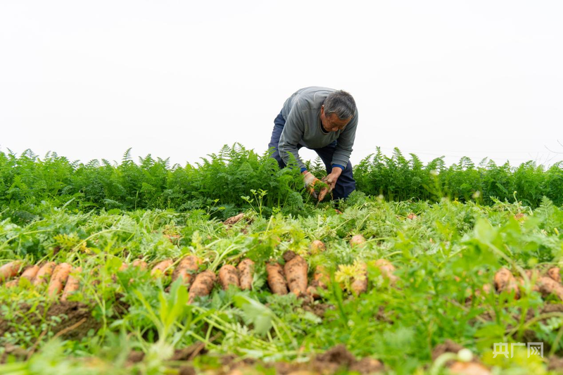 村民在采收胡萝卜(央广网发 蒋静 摄)