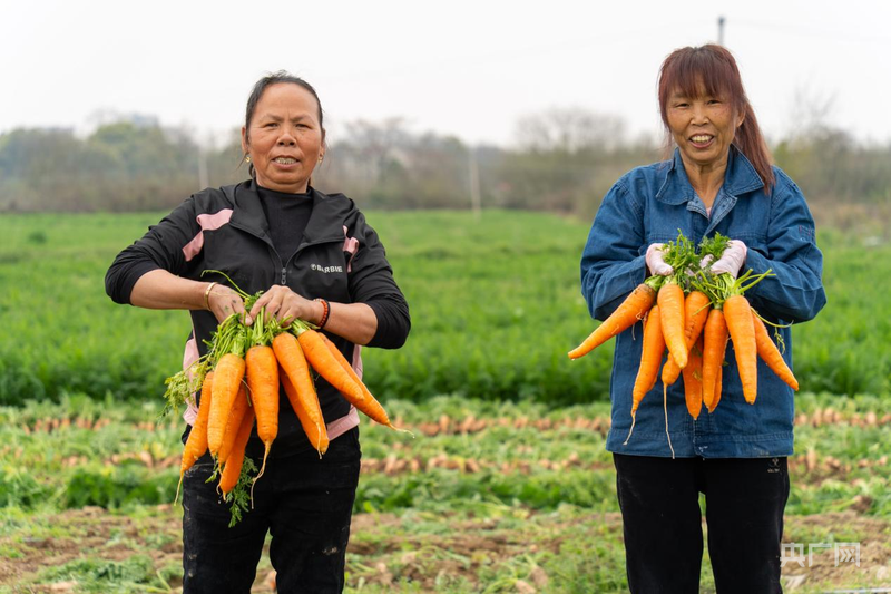 央广网永州3月20日消息(记者 杨清 通讯员 雷中祥)初春时节,万物勃发。湖南省永州市冷水滩区岚角山街道三庙社区胡萝卜种植基地,规模种植的胡萝卜迎来丰收采摘季,成为春日乡村里一道亮眼的丰收图景。