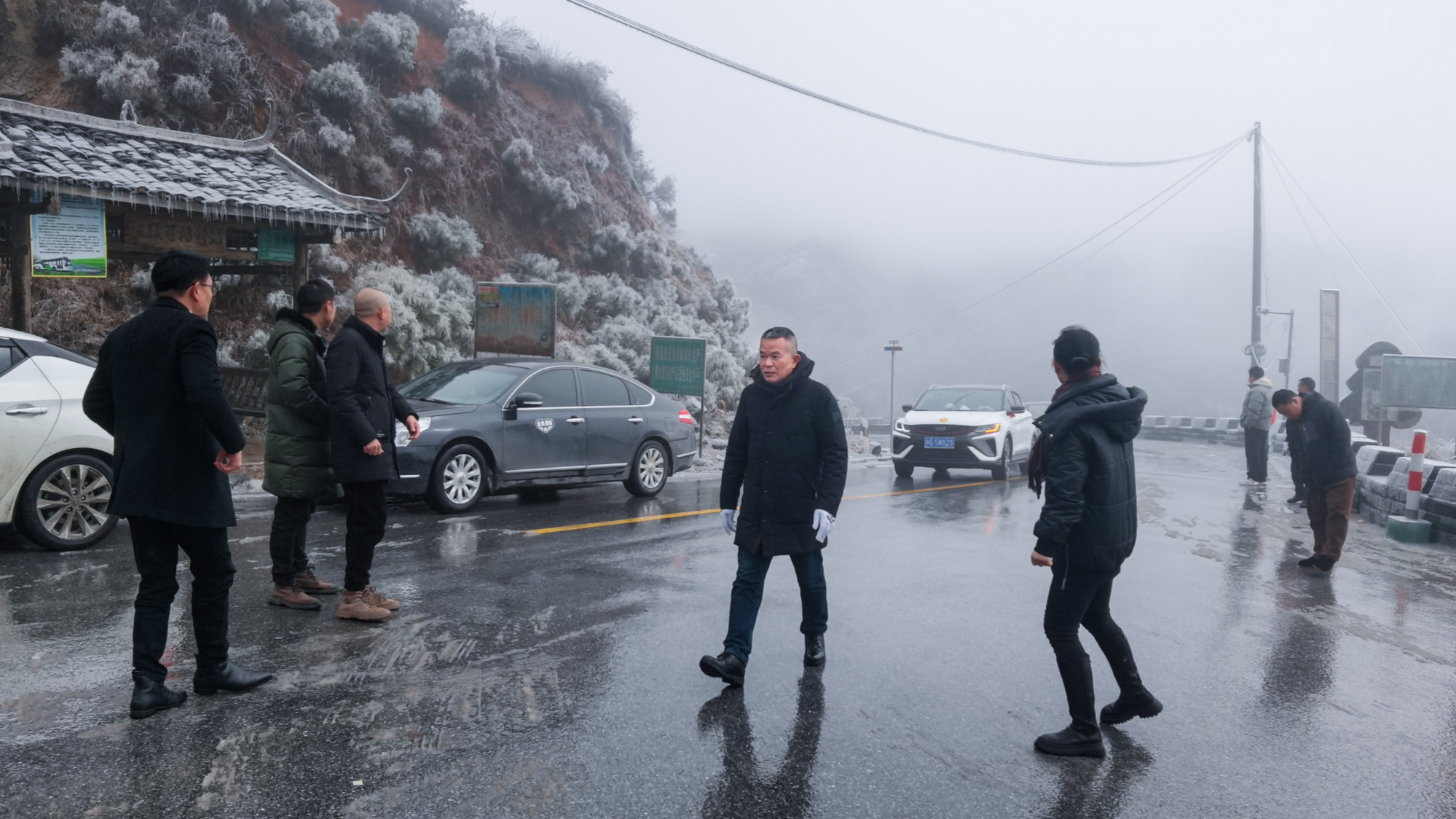 南山盘山公路上,张巨鸣指挥道路除冰保畅(城步公路建设养护中心 供图)