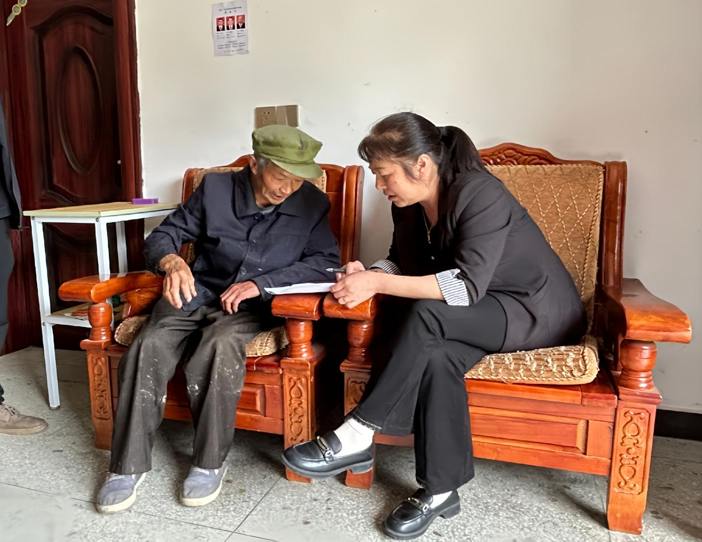 罗志红(右)在走访村民罗焱明(桂东县委宣传部 供图)