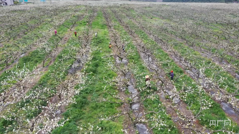 央广网永州3月30日消息(记者 黄珂岚 通讯员 黄春华)春日回暖,百花盛开。湖南省永州市江华瑶族自治县大路铺镇兰下村的六月香瑶山雪梨基地也迎来了盛花期。果农们抢抓晴好天气,采用人工授粉的方式为梨花授粉,基地引进的智能除草机器人也同步投入使用,科技与传统相结合,梨园内一派繁忙景象。